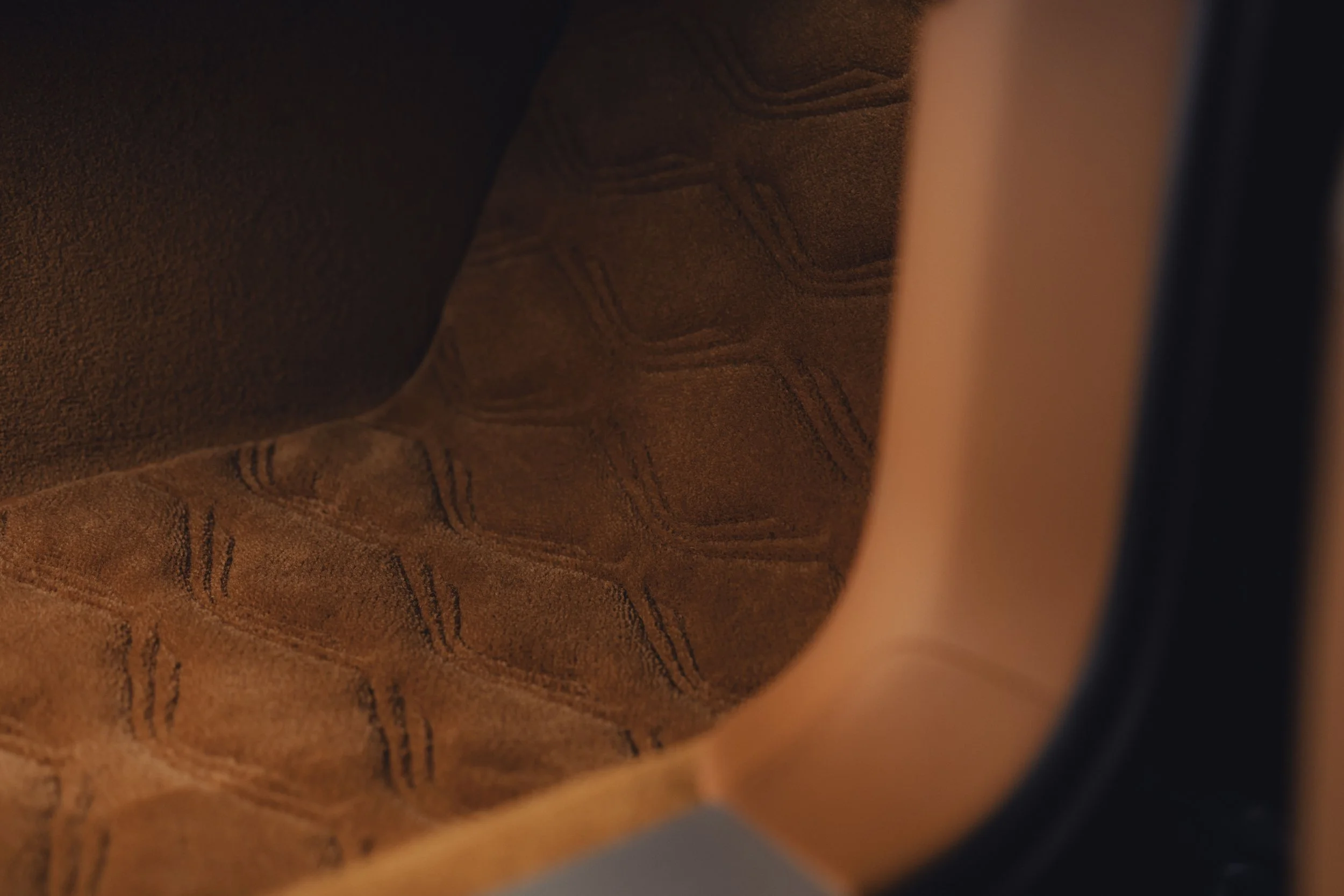 The cabin balances that signature detail with warm autumn tones. It combines tans, caramel hues, and a familiar light blue accent that draws the bespoke Breslow Blue of the Airbridge into the interior. Contrast stitching runs from the tonneau through the seats, headrests, and instrument panel. The design also places a subtle outline of the Batur volcano, which inspired the car’s name, into the deep-pile floor mats.