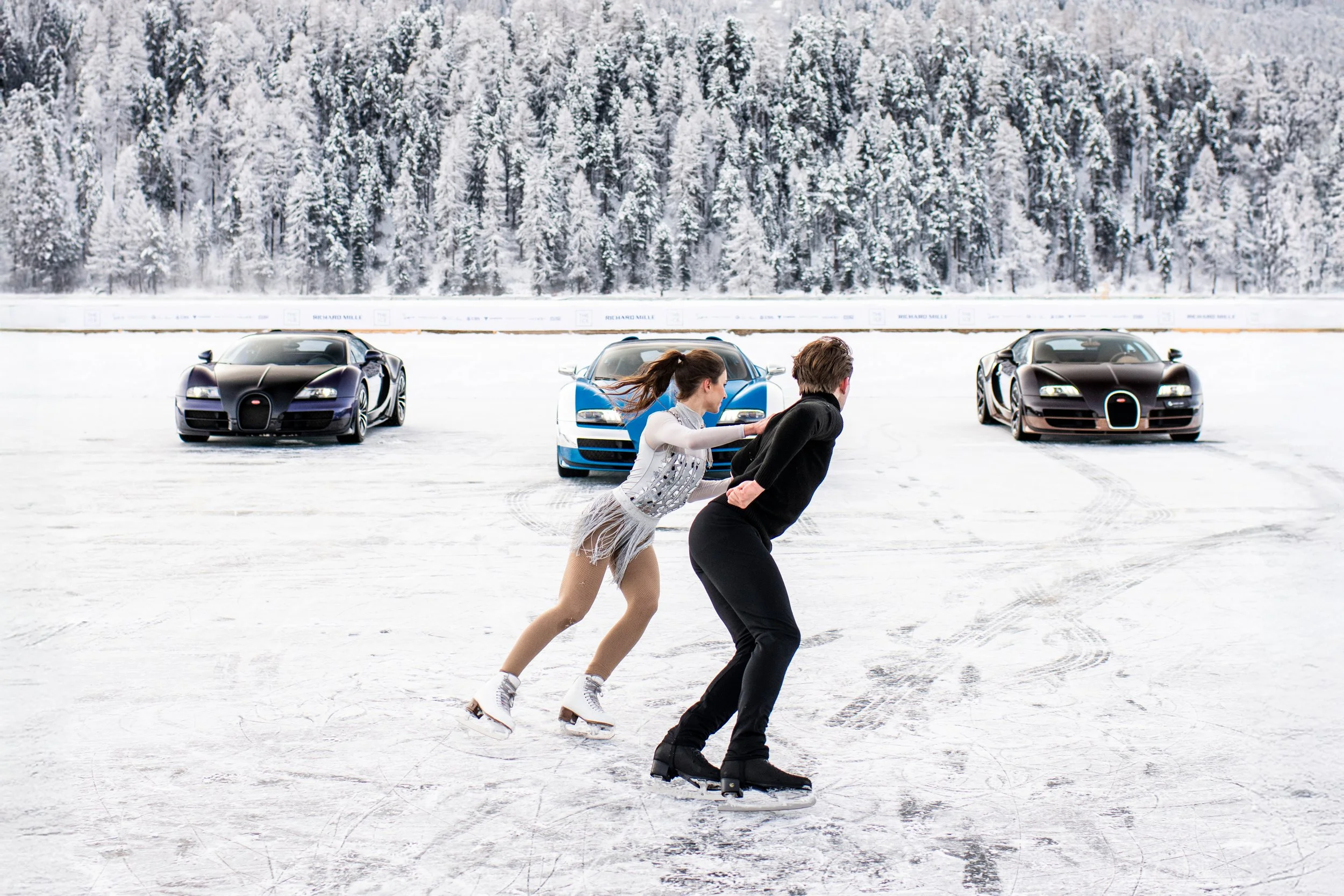 Bugatti honoured a design feat that raised the bar for performance, luxury and engineering. Three Veyron legends took to the ice, including a Veyron Grand Sport Vitesse ‘Soleil de Nuit’, a Veyron Grand Sport Vitesse ‘Rembrandt Bugatti’, and a Veyron Grand Sport Vitesse ‘Meo Costantini’ from the Les Légendes de Bugatti collection. The display fused unmatched performance with unique refinement, balancing ice and fire, static presence, and dynamic artistry. Professional ice skaters weaved to and fro between the cars and captured a timeless moment of grace. Together, they created a unique celebration of the automotive icon that ushered in Bugatti's rebirth two decades ago, introduced the hypercar, and reshaped automotive history through an unmatched fusion of pure elegance and raw power.